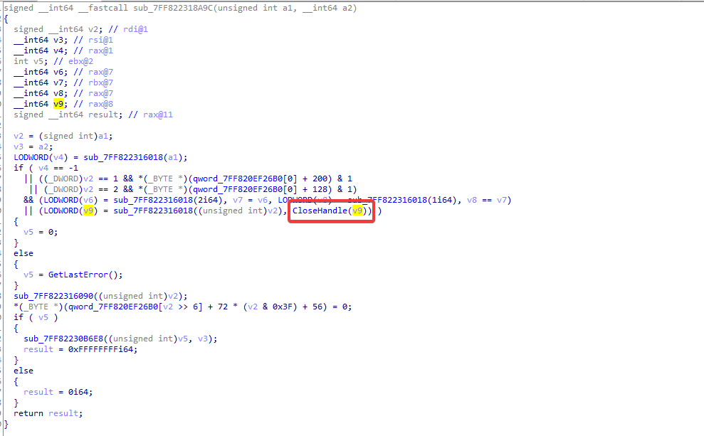 We can easily infer that v9 is a handle and that the function before it must return some form of handle. This is just a really minimal example.
